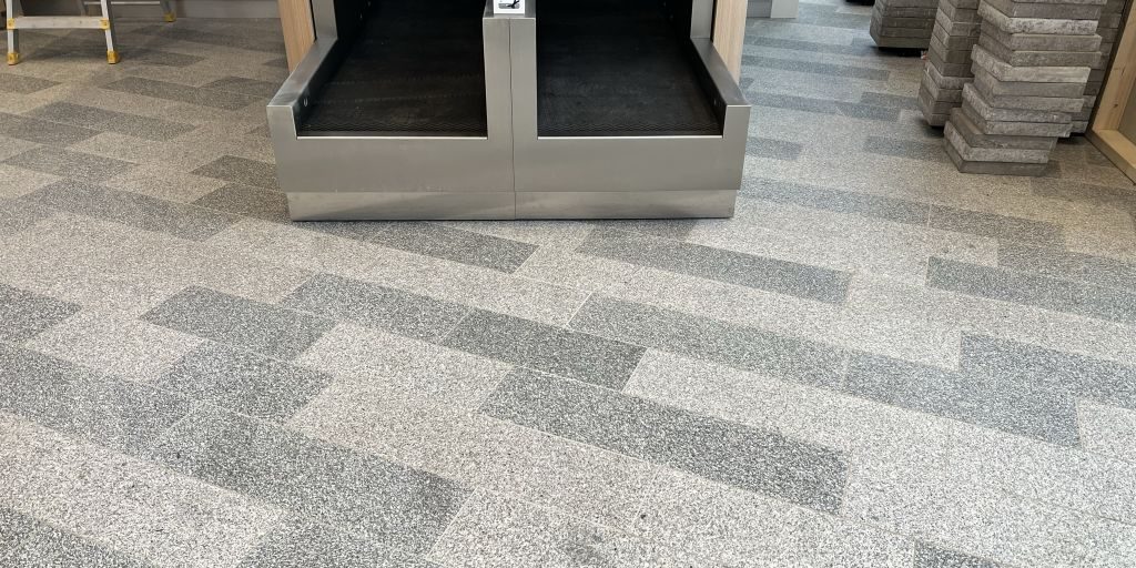 Die Gepäckfördersysteme sind mit Rollen ausgestattet und können bei Bedarf individuell nach vorne gefahren und verstellt werden. Bei dem Ausfahren der Bänder haben die Rollen störende Quietschgeräusche verursacht. Zur Behebung der Geräusche wurden die Rollen großzügig mit Maschinenöl behandelt. Das Ergebnis: Keine Nebengeräusche mehr, aber deutlich sichtbare Verunreinigung auf den gerade neu verlegten Natursteinen. Das dünnflüssige Öl war auf den Boden gelaufen und ist in die Oberfläche der Granitplatten tief eingedrungen. Granit ist sehr gut als Bodenbelag für Innen- und Außenbereiche geeignet, er ist nicht säure- oder lösungsmittelempfindlich, aber das Maschinenöl kann in die offenporigen Natursteine eindringen. Mit üblichen Reinigungsmethoden ist dann eine Entfernung nicht mehr möglich: Da kommt in den meisten Fällen nur der Austausch der betroffenen Natursteine in Betracht. „Genau das war die Situation in Helsinki. Verschiedene Unter-nehmen hatten bereits erfolglos versucht, die Öl-Rückstände zu entfernen. Der Hersteller der Förderbänder, die österreichische Firma motion 06 gmbh stand vor der Entscheidung entweder die Flecken vollständig zu beseitigen oder die Kosten für den Austausch der Steine zu tragen. Da hat das Unternehmen uns um Hilfe gebeten. Wir verfügen über langjährige Erfahrung in der Steinreinigung und haben bewährte Produkte in Profi-Qualität für die Ausführung der Arbeiten“, berichtet Evangelos Iordanidis, Geschäftsführer Finalit Deutschland GmbH. „Nach einer genauen Schadensanalyse haben wir eine Musterfläche bearbeitet und das Öl vollständig beseitig. Das Ergebnis hat überzeugt und wir wurden mit der Reinigung der Bodenflächen beauftragt“, erläutert der Geschäftsführer weiter.